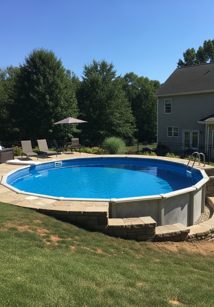 Digging the pool halfway down lowers the profile significantly. It gives you that natural, in-ground look without the huge cost commitment.