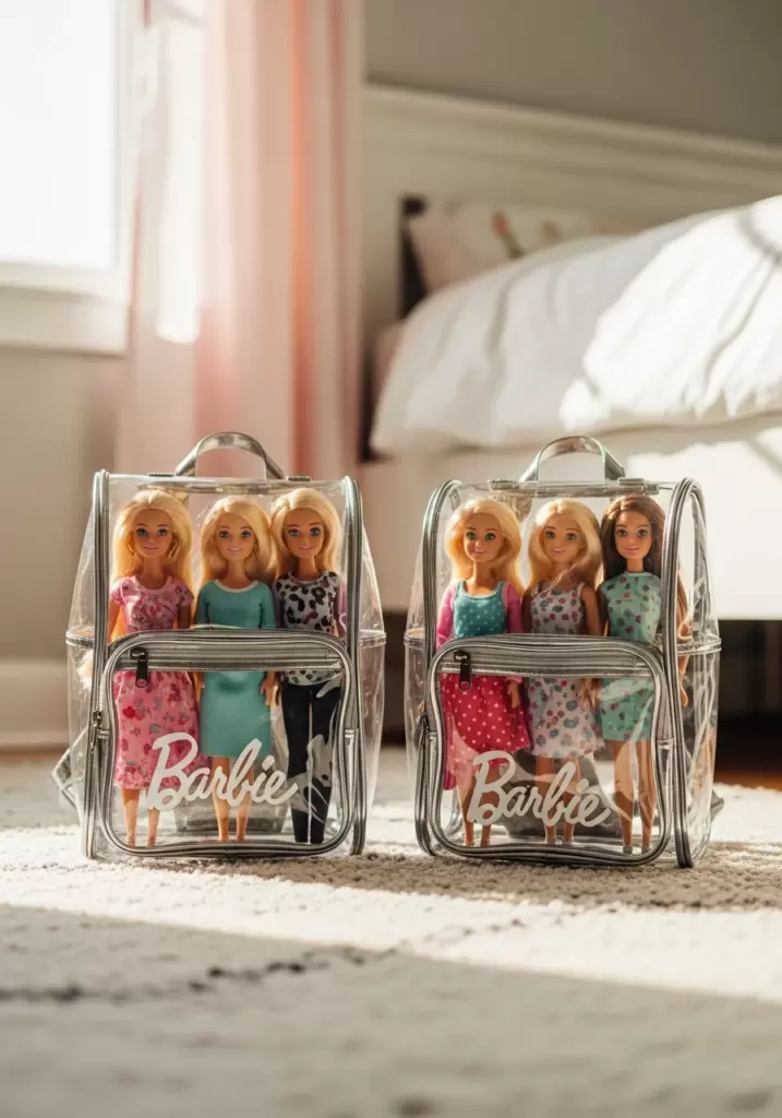 A clear, small backpack or vinyl carrier is perfect for transporting dolls. Instead of stuffing them into a regular bag, a clear carrier lets you see who is coming along and keeps their hair from getting messy. They double as temporary storage.