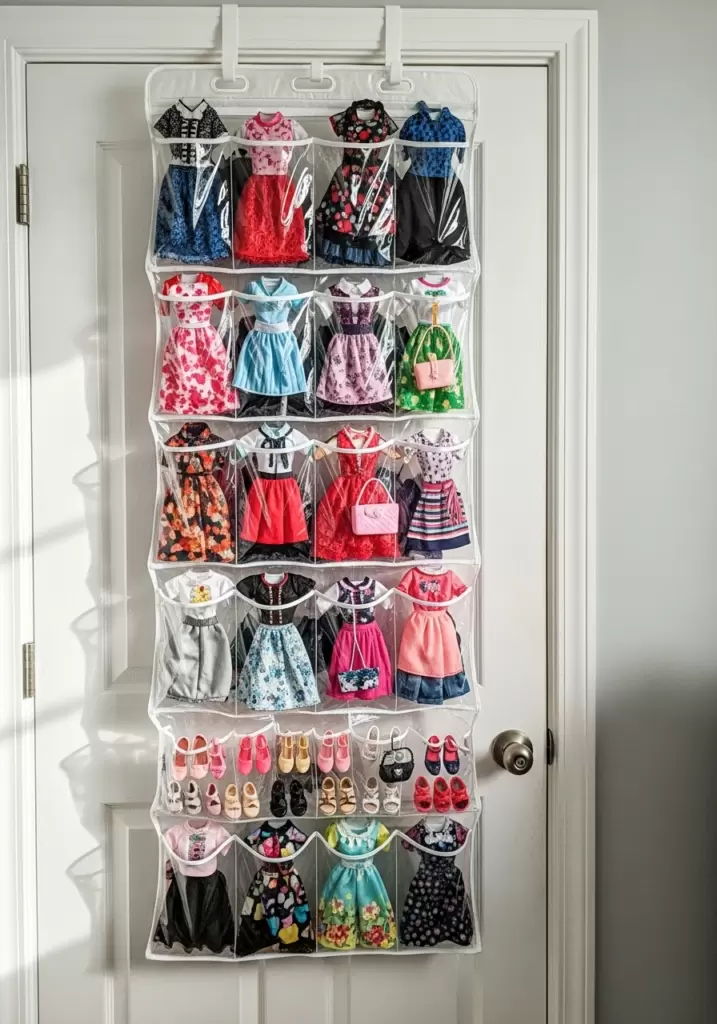 The best secret weapon for Barbie clothes is a clear, over-the-door shoe organizer. Each pocket is the perfect size for a complete outfit or a pile of tiny shoes. It keeps everything off the floor and easy to see.