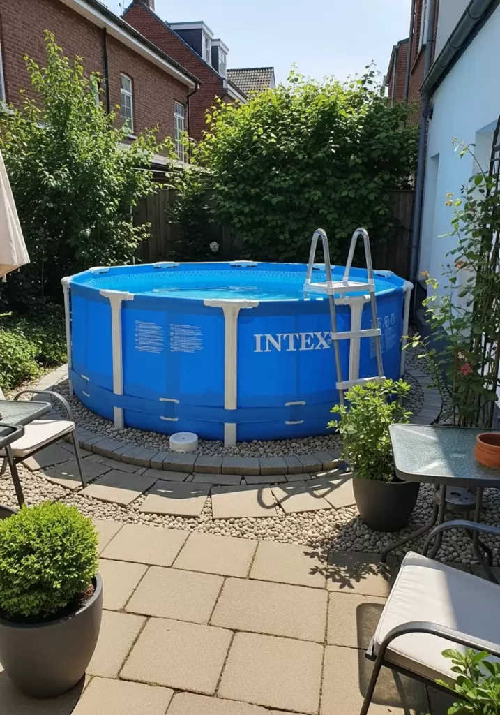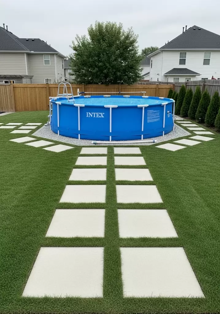 Create a classic and charming brick pathway that guides guests directly from your house to the Intex pool area. It adds structure and a welcoming feel.