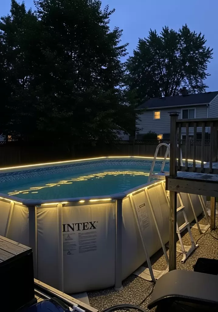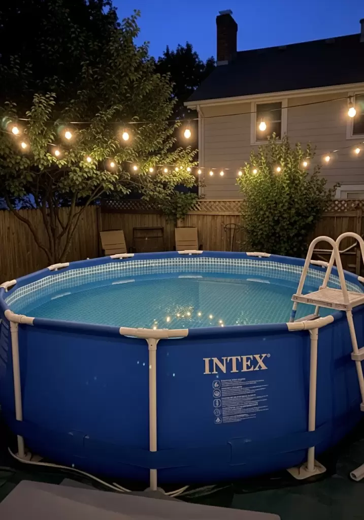 Hang warm string lights above your Intex pool area to create a welcoming and cozy evening atmosphere. It’s perfect for relaxing night swims or enjoying the cool night air.