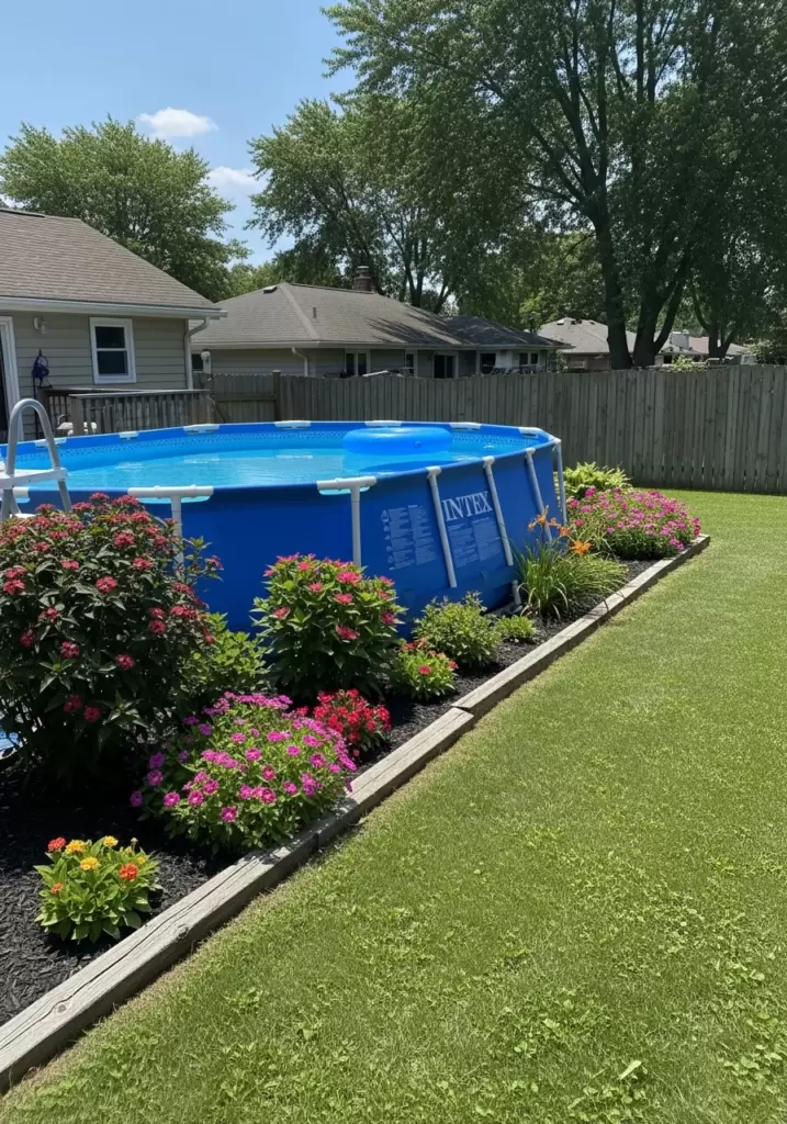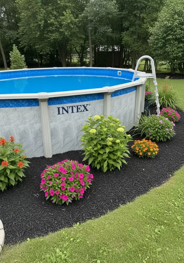 Surround your Intex pool with mulch beds and seasonal flowers. This adds natural texture and color to your backyard while keeping maintenance simple and neat.