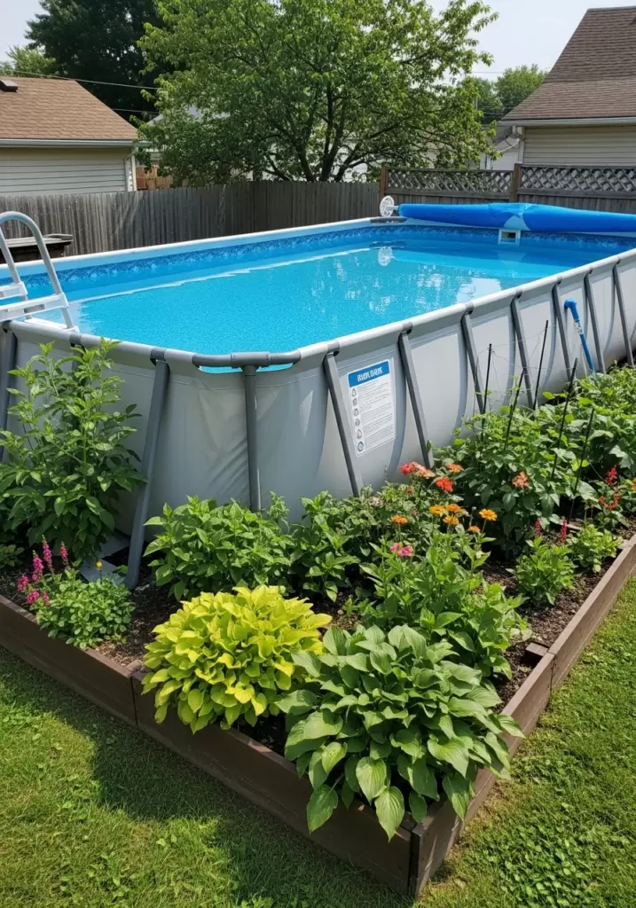 Frame your Intex pool area by building flower beds along your fence line. This makes the space feel like a beautiful garden retreat and adds color and life.