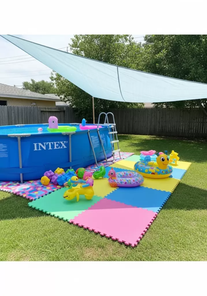 Make your Intex pool safe and fun for kids by including inflatable toys, shade sails, and soft flooring. This creates a dedicated splash zone where little ones can play happily.