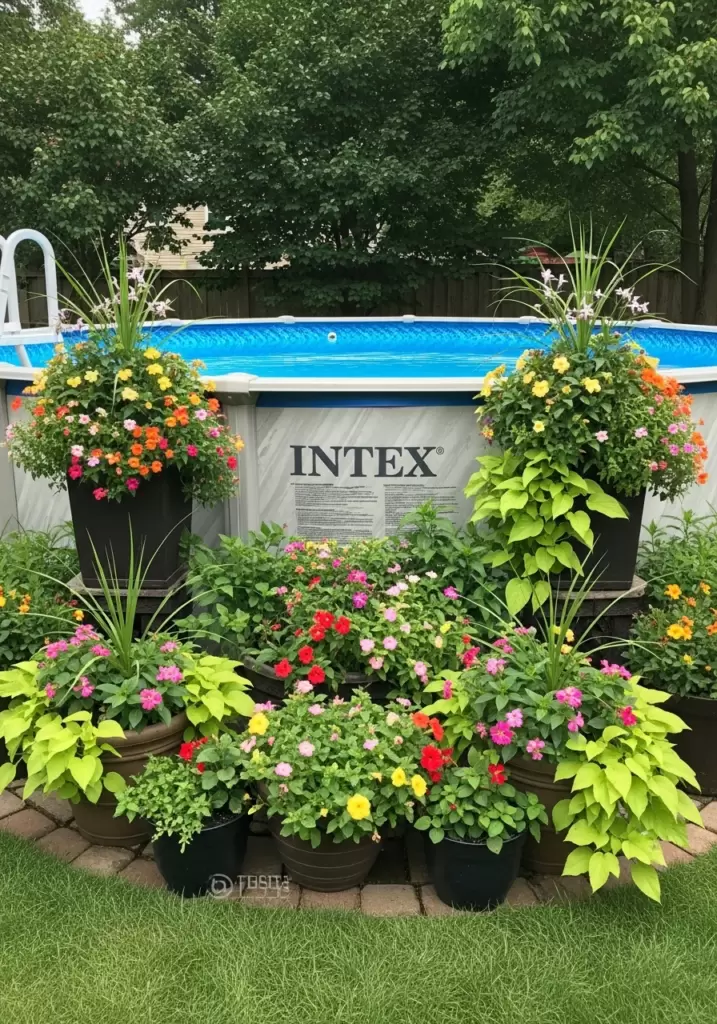 Soften the look of your Intex pool by placing large planter pots around its perimeter. Fill them with colorful flowers and lush greenery to create a lively, inviting garden oasis.