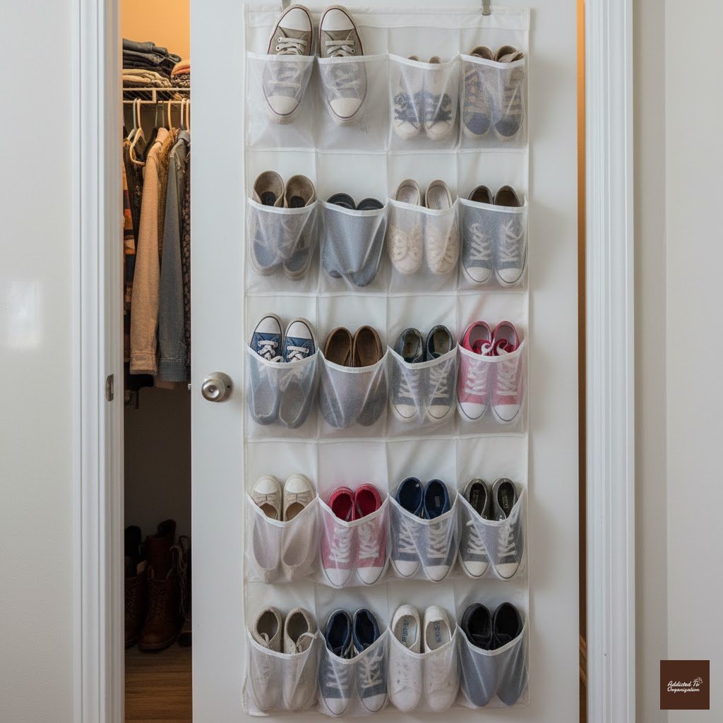Don’t forget the back of the door! An over-the-door organizer with clear pockets is perfect for shoes, folded scarves, small accessories, or even cleaning supplies. This area is often overlooked and can provide significant vertical storage.