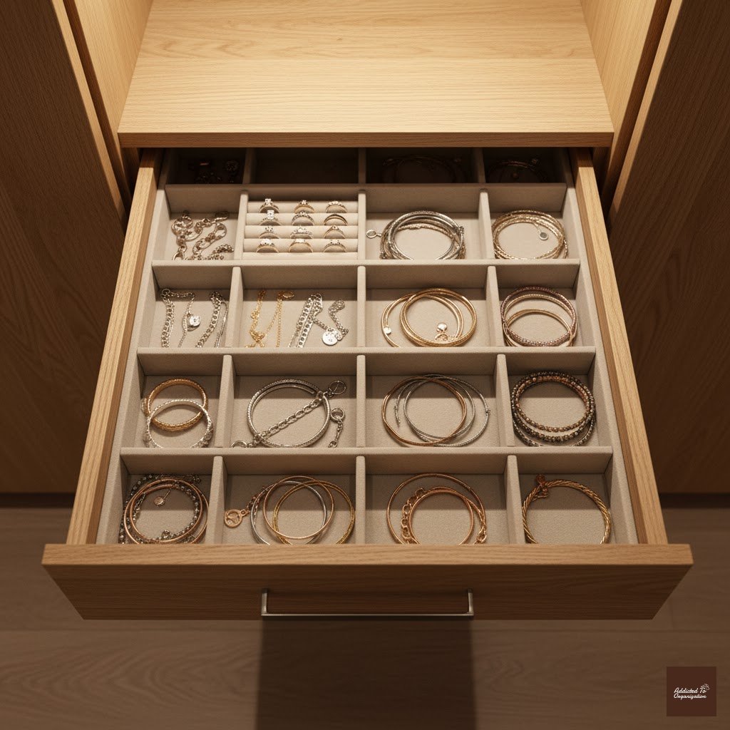 Pro Tip: Line the bottom of the drawer with a non-slip velvet mat to prevent jewelry from shifting when the drawer is opened or closed.