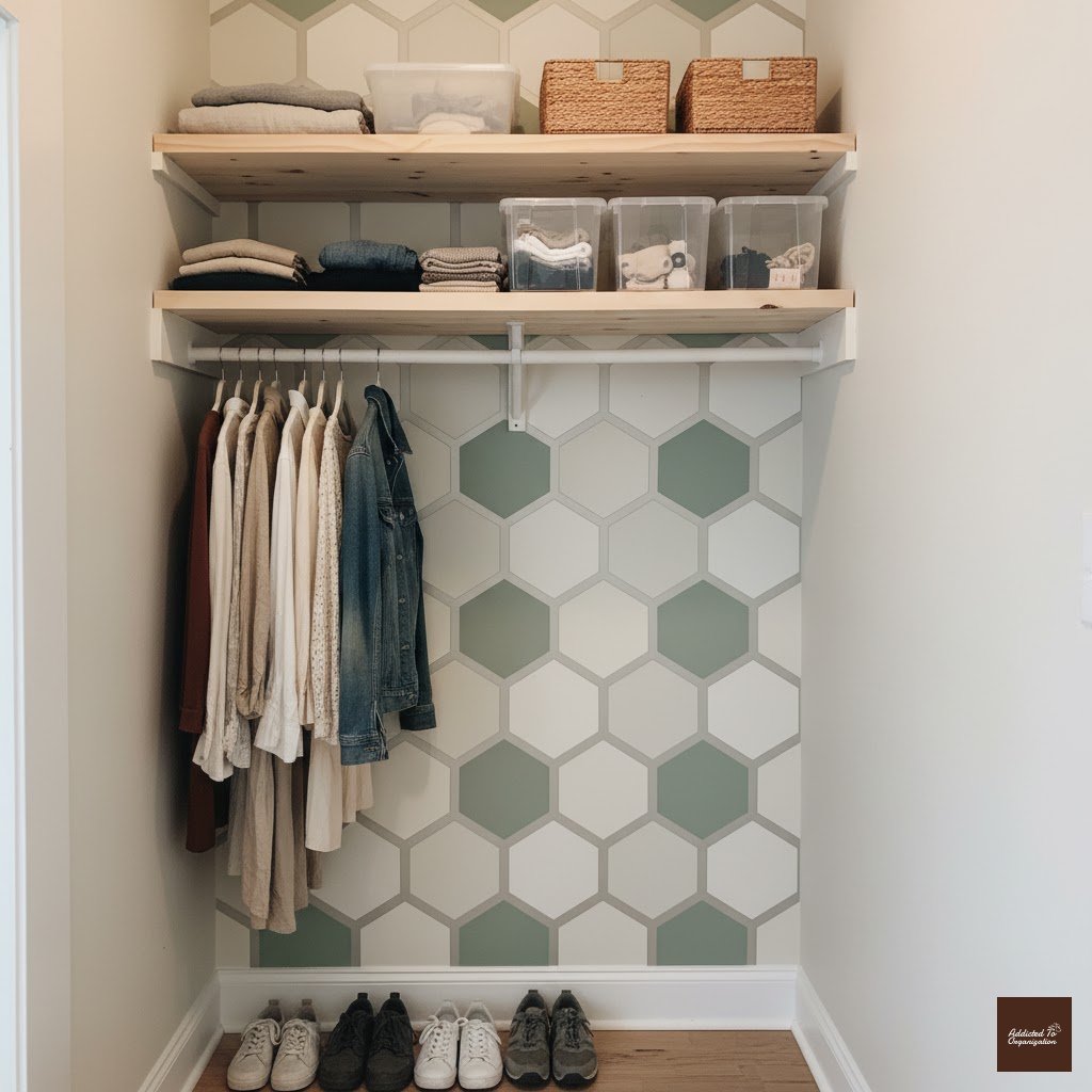 Don’t let bags, totes, or hats take up valuable shelf space. Install stylish wall hooks on any available vertical surface—even the back of the door or the end panel of the shelving unit. This keeps items accessible and, most importantly, off the floor.