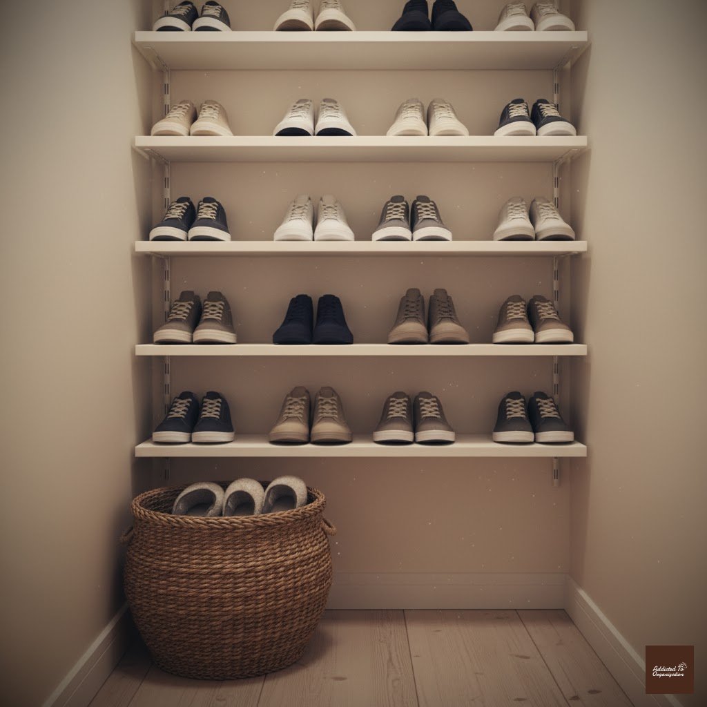 - Install shelves at a slight angle for better shoe visibility.