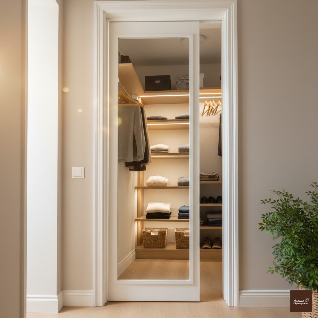 Pro Tip: If a full door swap isn’t feasible, mount a slim mirror panel inside the closet door.