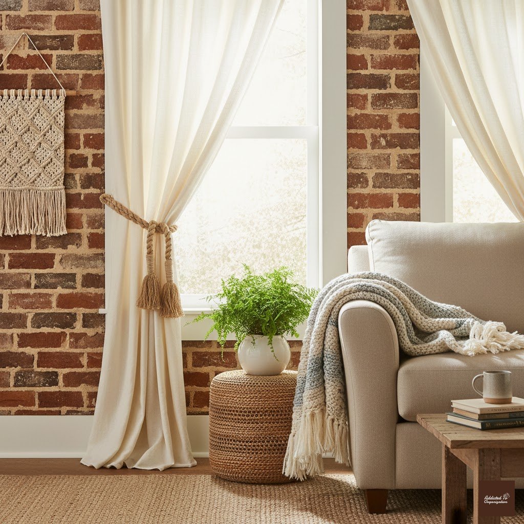 Add personality with unique tiebacks — think leather straps, chunky tassels, or rustic rope.