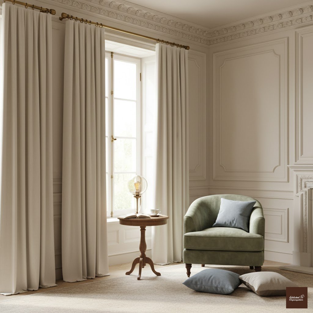 Pro Tip: Hang the rod 4–6 inches wider than your actual window frame to make the glass appear larger when the drapes are stacked open.