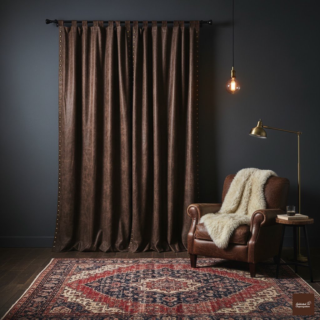 Make a bold, masculine statement with studded faux leather drapes—perfect for moody or industrial spaces.